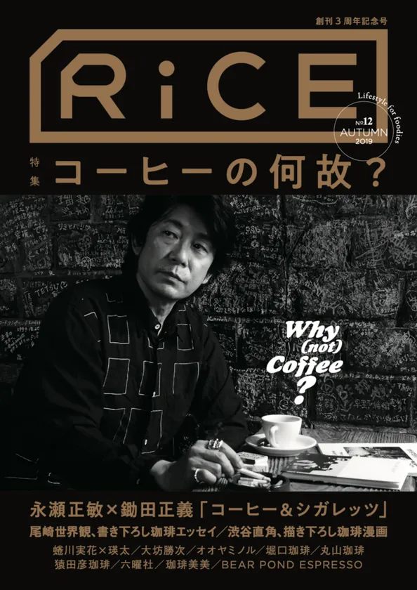 ひとつの食を多方面から深堀りするRiCEの今回の特集では、78ページにわたって日本のコーヒーカルチャーを徹底解剖します。古くから喫茶文化が根付く日本は世界の様々なトレンドを融合しながら、独自のコーヒーカルチャーを形成してきました。その道のプロフェッショナル達による特別鼎談やインタビューに加え、有名店や地方の名店、海外で活躍するコーヒー店などのバリスタや焙煎士のこだわりと理由にフォーカスを当てます。また、人気バンド、クリープハイプのボーカル・ギターで、文筆家としても活躍する尾崎世界観さんの書き下ろしエッセイ、漫画家・渋谷直角さんの新感覚コーヒー漫画も掲載しています。