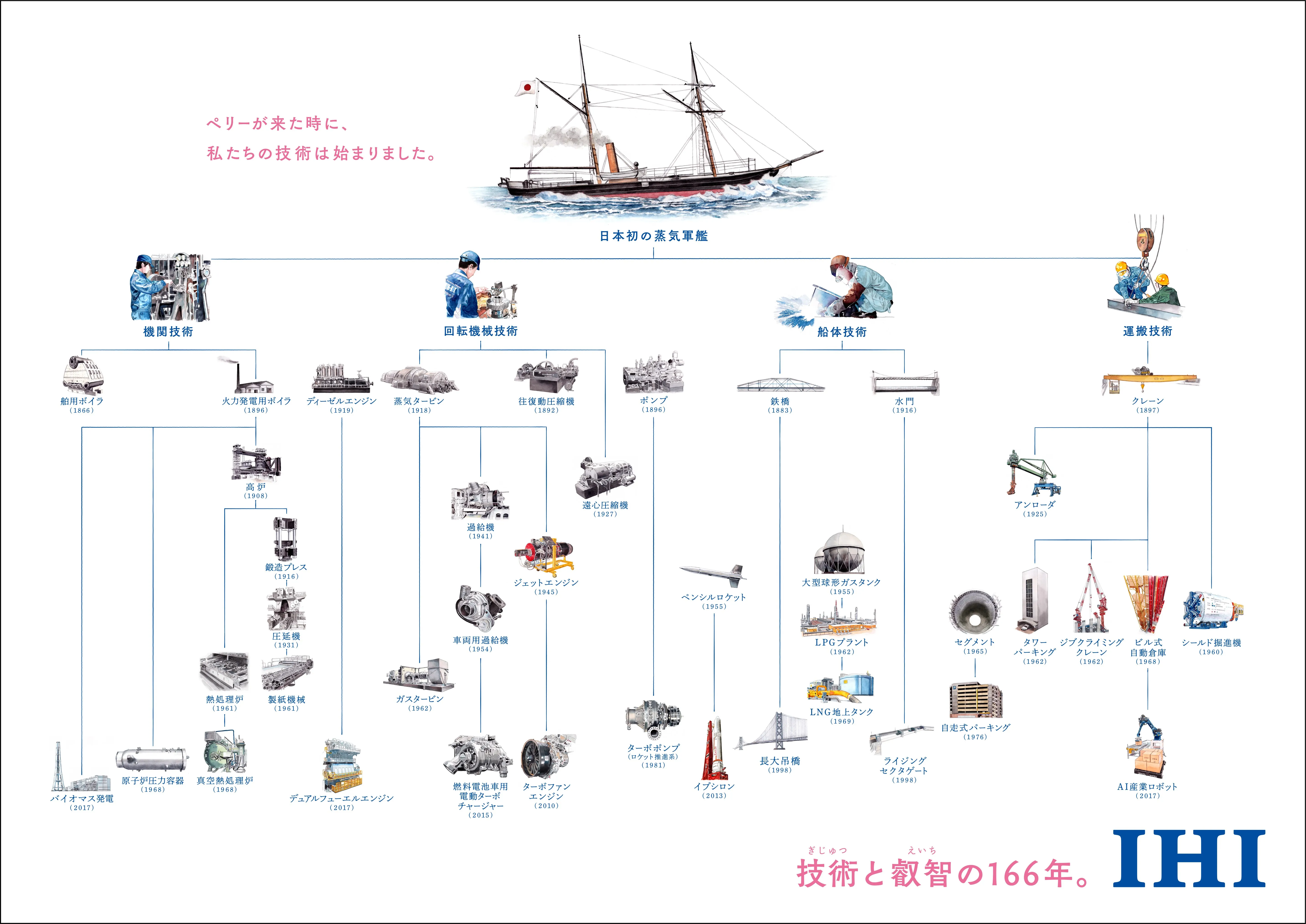 ペリーが日本に来航してきた年から166年、IHIは、ものづくりへの飽くなき挑戦と高度なエンジニアリング力で、社会の発展に貢献してきました。