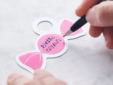 受け取った方に想いが伝わる、リンドールの形をしたメッセージタグのご用意もあります。用途にあわせて「Thank you(レッド)」「Just Married(ブルー)」、自由にメッセージを記入できる「無地(ピンク)」の3種類からお選びいただけます。