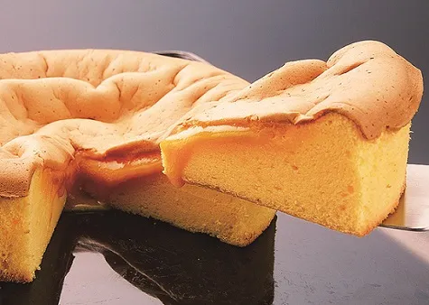 カステラ生地にチーズプリンを流し込み、ほろ苦いキャラメルソースで蓋をした新感覚スイーツ。