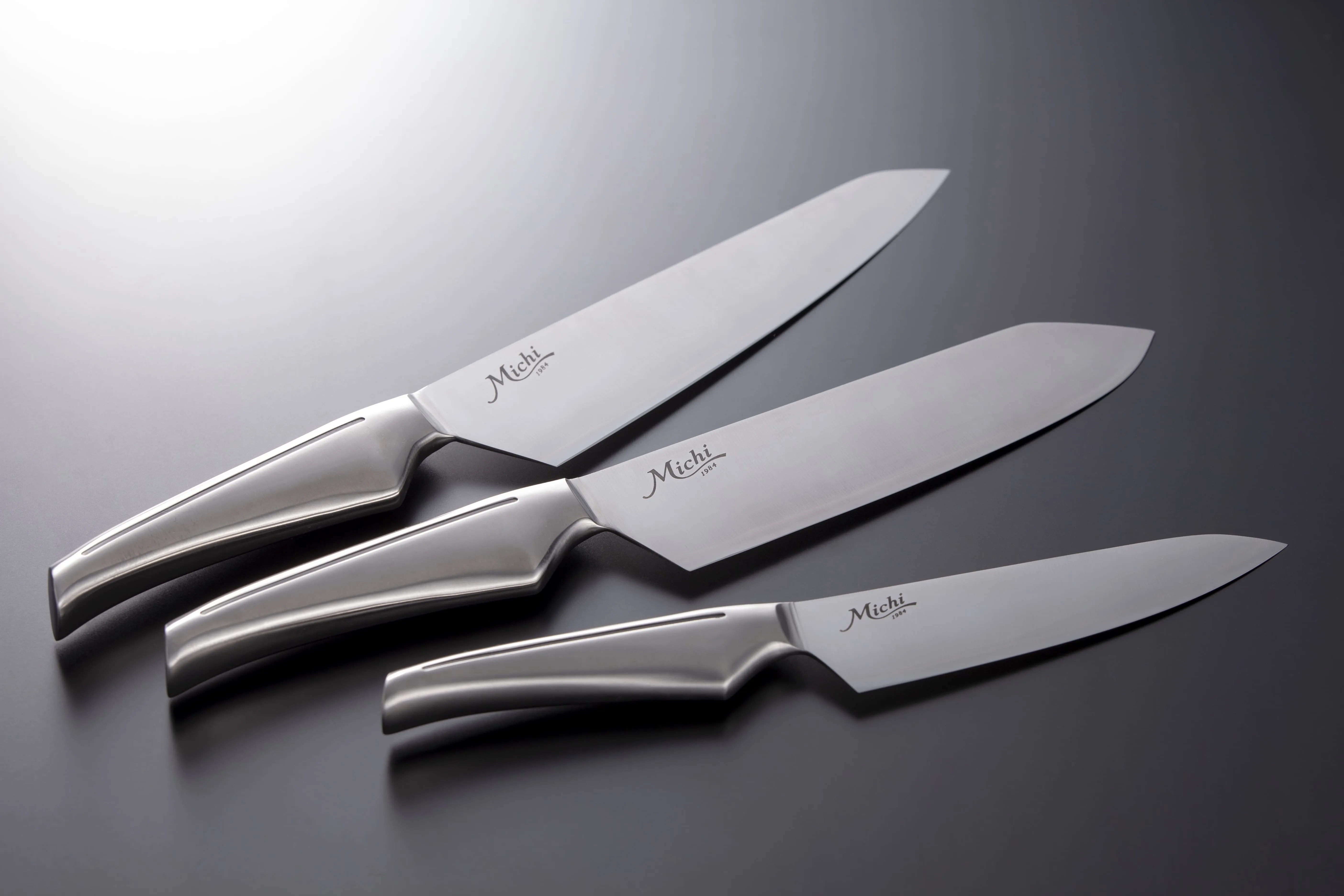 Michiシリーズの包丁は速水氏自らがデザインをデッサンし模型を作って特に握りやすさ、軽さ、疲れにくい形状にするため何度も試作を繰り返し2年の歳月をかけて完成しました。また刃物の街として有名な岐阜県関市で丁寧に作られているため切れ味も持続するのが特徴です。