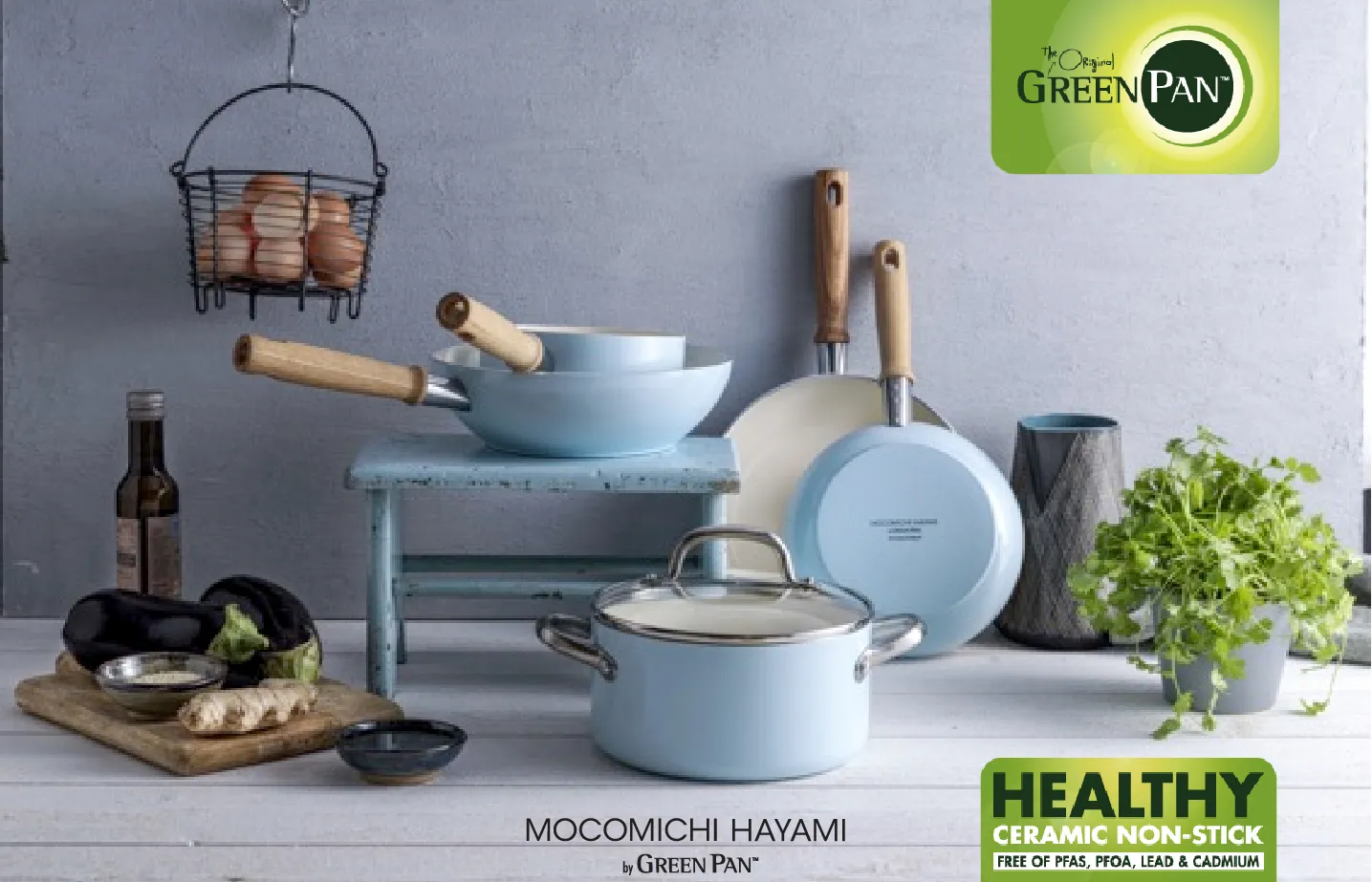 また、MOCOMICHI HAYAMIシリーズからもセラミックコーティングで世界一を誇る、美食の国ベルギーブランドのグリーンパン(GreenPan)とコラボレーションした調理器具を発売します。(MOCOMICHI HAYAMIオフィシャルウェブショップ、全国百貨店、ビックカメラ、ヨドバシカメラ、ロフトなどにて順次発売)