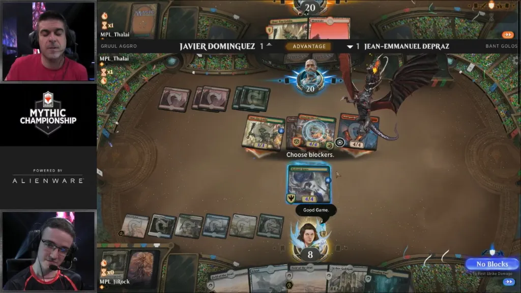 決着の瞬間。ドミンゲス選手の屈強なクリーチャー軍団がドゥプラ選手のライフを0に