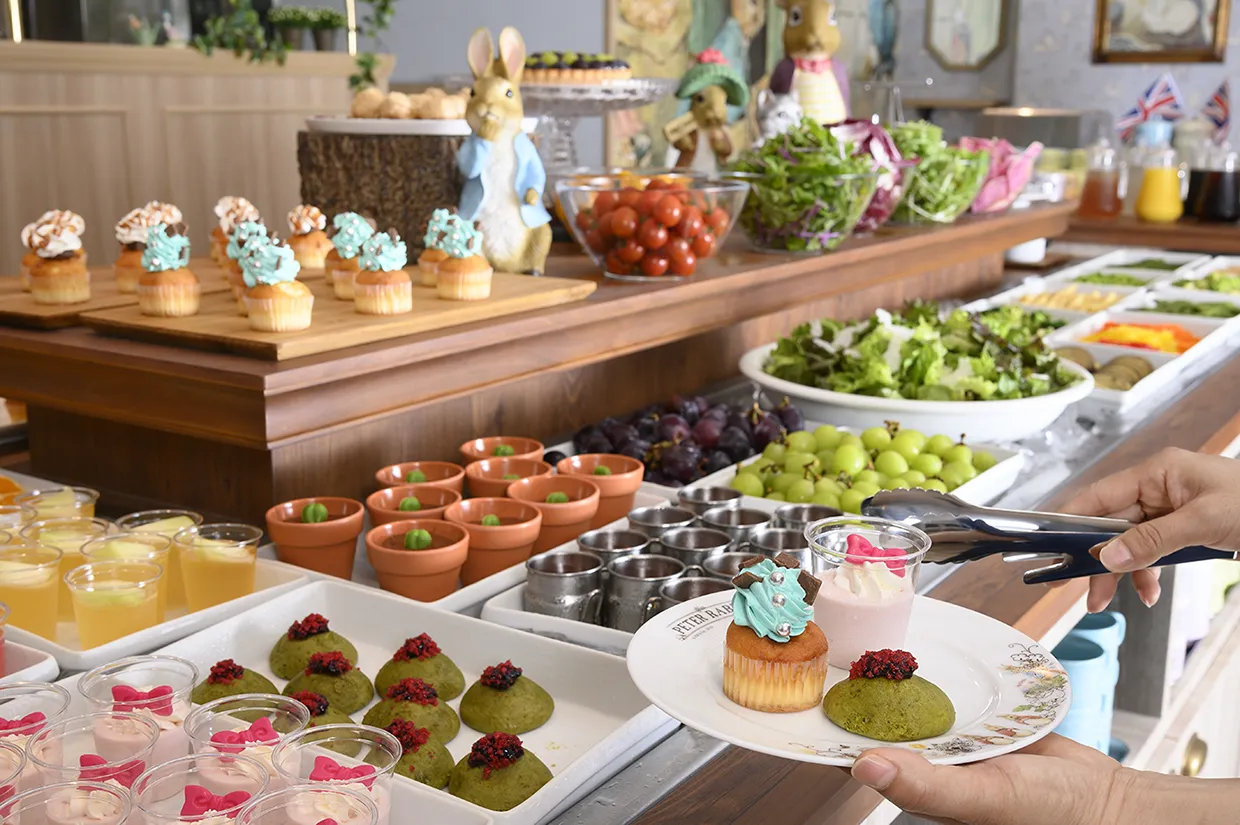 また、新たな取り組みとして、ピーターや仲間たちが大好きな新鮮野菜や季節の果実を豊富に使用したブッフェコーナーを導入。更に、店舗の一角には、初の出店業態となる「ピーターラビット(TM)クレープリー」を隣接。フォトジェニックなクレープやソフトクリーム、ドリンクをテイクアウトで提供することで、店舗の外でも気軽に楽しんでいただきます。