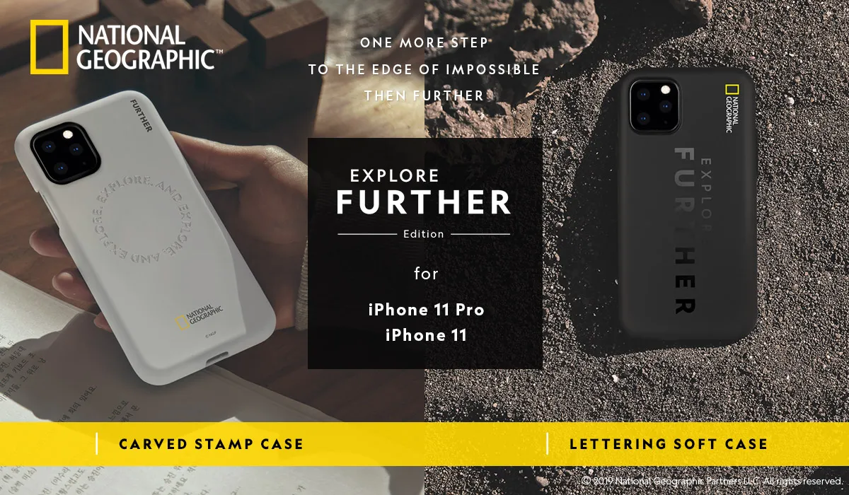モバイル周辺アクセサリー専門の株式会社ロア・インターナショナル(所在地:東京都新宿区、代表取締役社長:Ally Won)は、SKINPLAYER社のナショナル ジオグラフィック公式ライセンス商品からiPhone 11 Pro / 11 専用ケース、Explore Further Edition(エクスプロー ファーザーエディション)の「Lettering Soft Case(レタリングソフトケース)」と「Carved Stamp Case(カーブドスタンプケース)」の2種を発売しました。