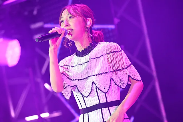 “SATURDAY STAGE”のトリを飾ったのは、ソロ名義では初の海外ライブ出演となる南條愛乃。「ゼロイチキセキ」で幕を開けたステージは、「君のとなり わたしの場所」「サヨナラの惑星」といったシングル表題曲尽くしの豪華セットで、ソロでの訪台を待ち望んでいた現地のファンを喜ばせた。