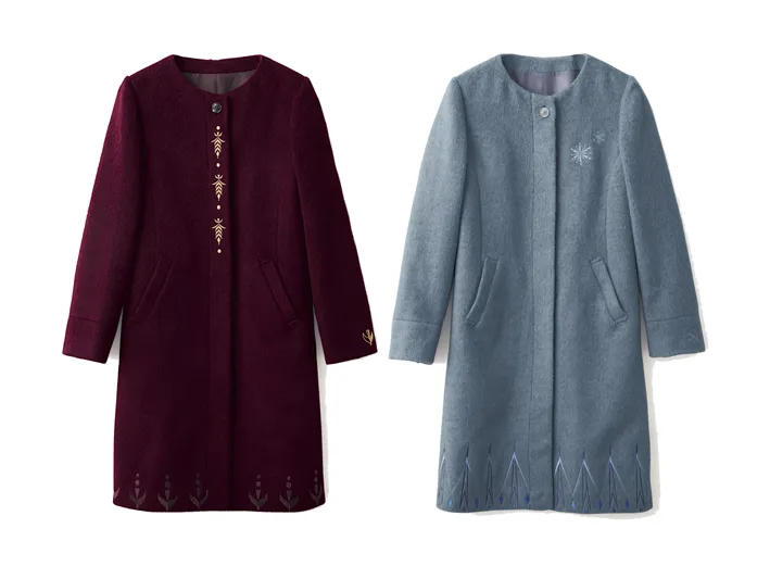 中でもおすすめの商品は、「10金ペンダント」と「刺繍入りロングコート」です。「10金ペンダント」は、エルサとアナそれぞれのキャラクターをイメージしたモチーフを施した白蝶貝とカーネリアンのペンダントトップで、2人の気品やパワーが感じられるデザインとなっています。そして、「刺繍入りロングコート」は、雪の結晶や劇中に登場する紋章をモチーフにした刺繍がポイントで、シンプルでエレガントなコートは冬に活躍すること間違いなしのデザインです。