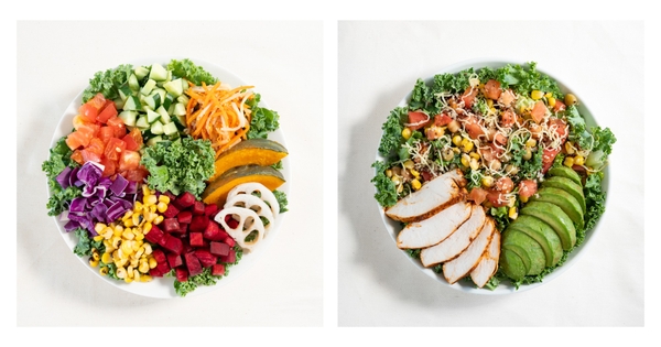 (右)アボカドとグリルチキンのメキシカンサラダ〜ケイジャンスパイシードレッシング〜