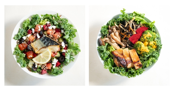 ヨーグルトを使用した特製タレに漬け込んだ照り焼きチキンをメインに、塩麹とりんご酢で仕上げた3種のきのこのマリネ、ひじきを入れた塩きんぴら、ブロッコリーとかぼちゃのサラダの3種のデリをトッピングした1ボウル。ひとくちごとに異なるデリのうま味が広がり、さまざまな味の層を楽しめる贅沢な和風サラダです。