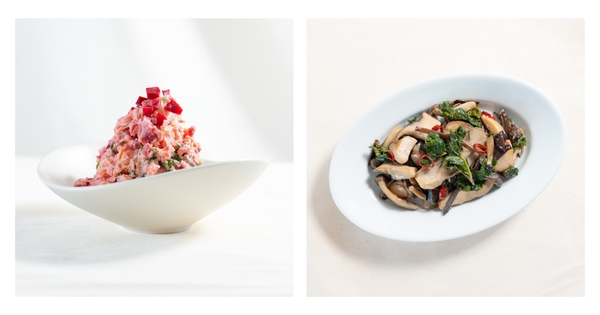 (右)ケールと味わう4種のきのこのアンチョビマリネ