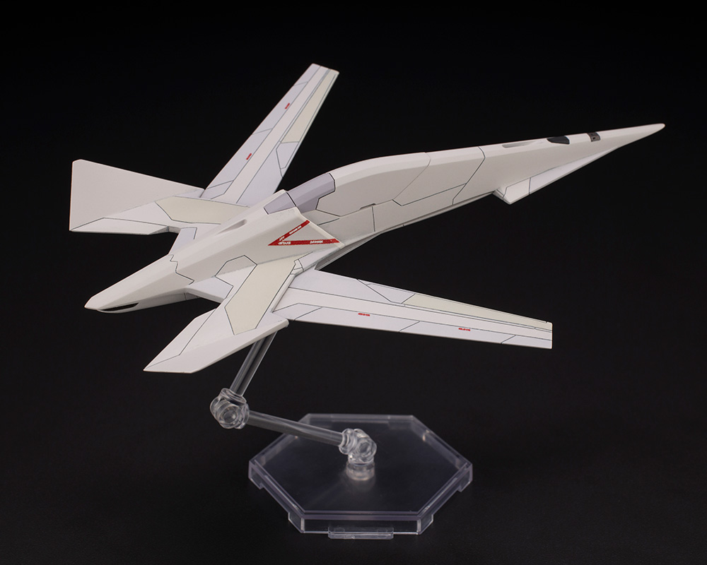ランディングギアやウェポンベイの開閉も差し替えにて再現しており、MSLとQAAMを装着可能。付属のフライングベースとミニベースは左右各90°ロールに対応した専用接続パーツを装備。1/144のサイズ感ながら合体時全長20cm超のモデルをお手元で体感することが出来ます。