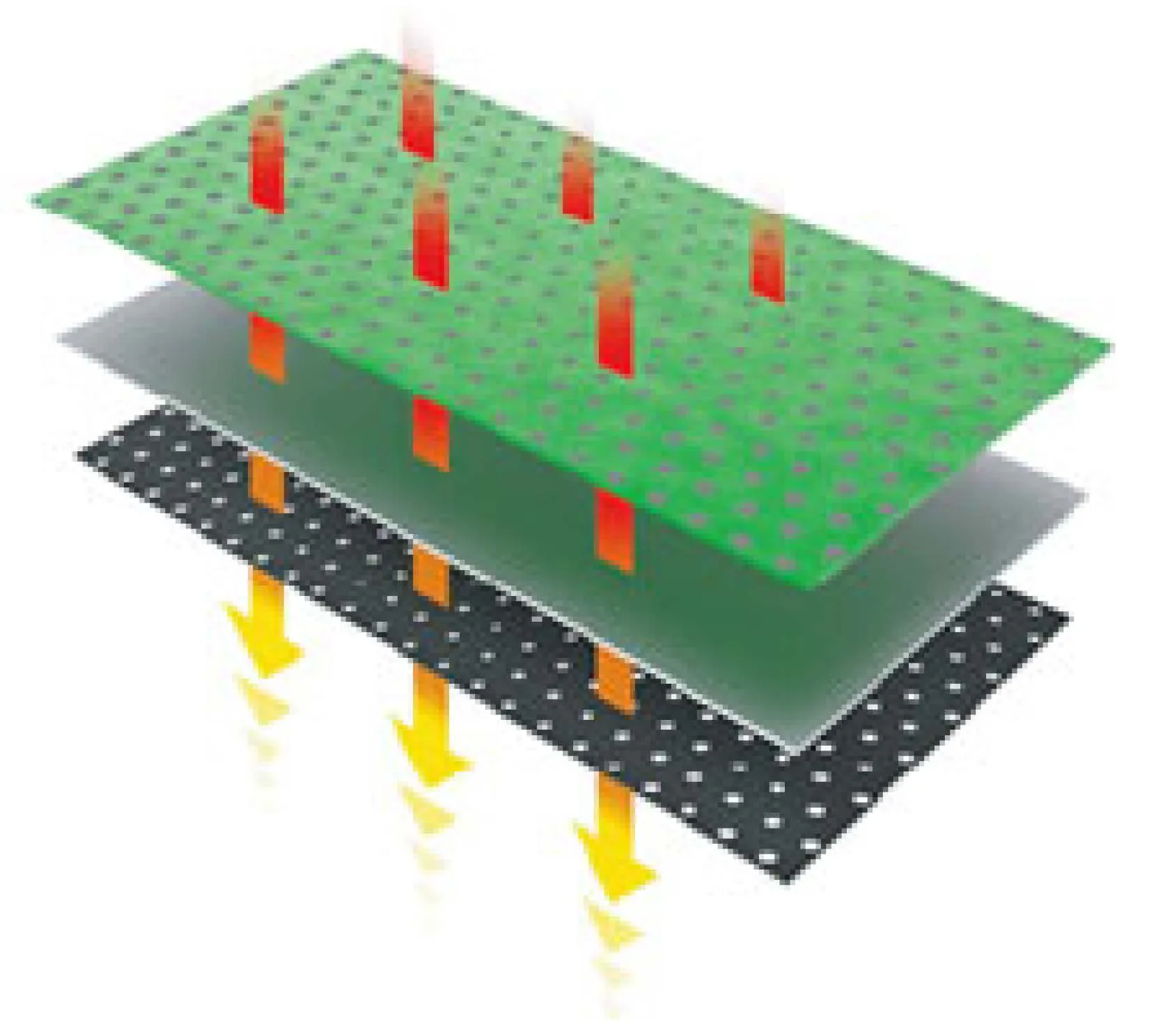 サーマフィンレイヤー(素材:グラファイト)はスマートフォン本体から発生した熱を吸収して逃がし、ケース内部に汚れが侵入するのを防いでいます。