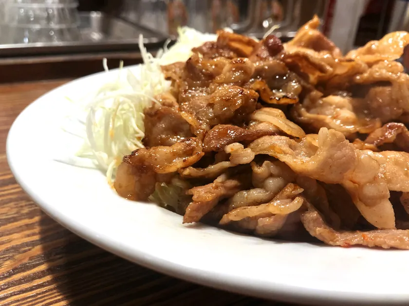 上質の国産豚を大勝軒のラーメン醤油で炒めた焼肉は、一般的な「豚のしょうが焼き」とは違った、暴力的なまでに食欲を掻き立てるラーメン店ならではの独特の香りが特徴です。