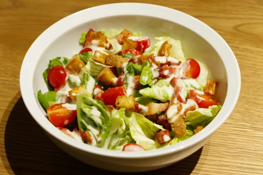 ロメインレタスとベーコンのホエイシーザーサラダ