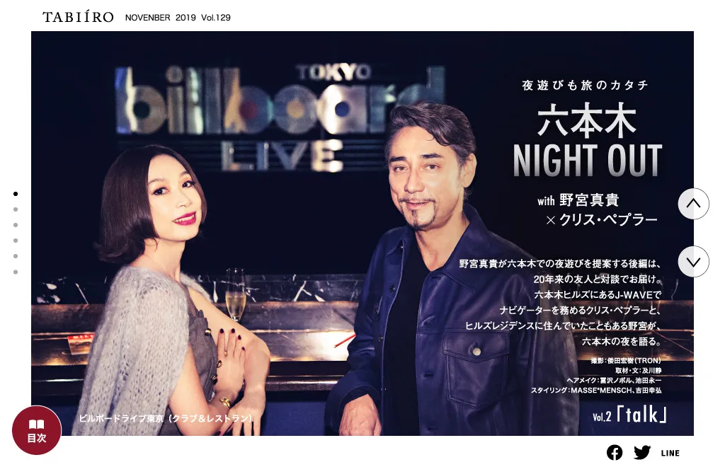 90年代に「渋谷系」ムーブメントを国内外で巻き起こし、かつては六本木ヒルズレジデンスの住人だった野宮真貴さんに学ぶ「六本木の夜遊び」連載。最終回は、J-WAVEで長年ナビゲーターを務めるクリス・ペプラーさんと、今の六本木の夜遊びを語ります。