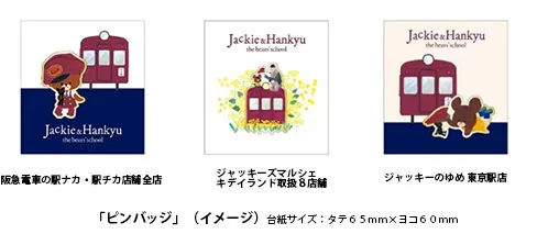 発売店舗において、「Jackie&Hankyu」のグッズを2,000円(税込)以上お買い上げの方へ、オリジナルノベルティ(ピンバッジ)を進呈します。数量限定のため、なくなり次第終了とさせていただきます。