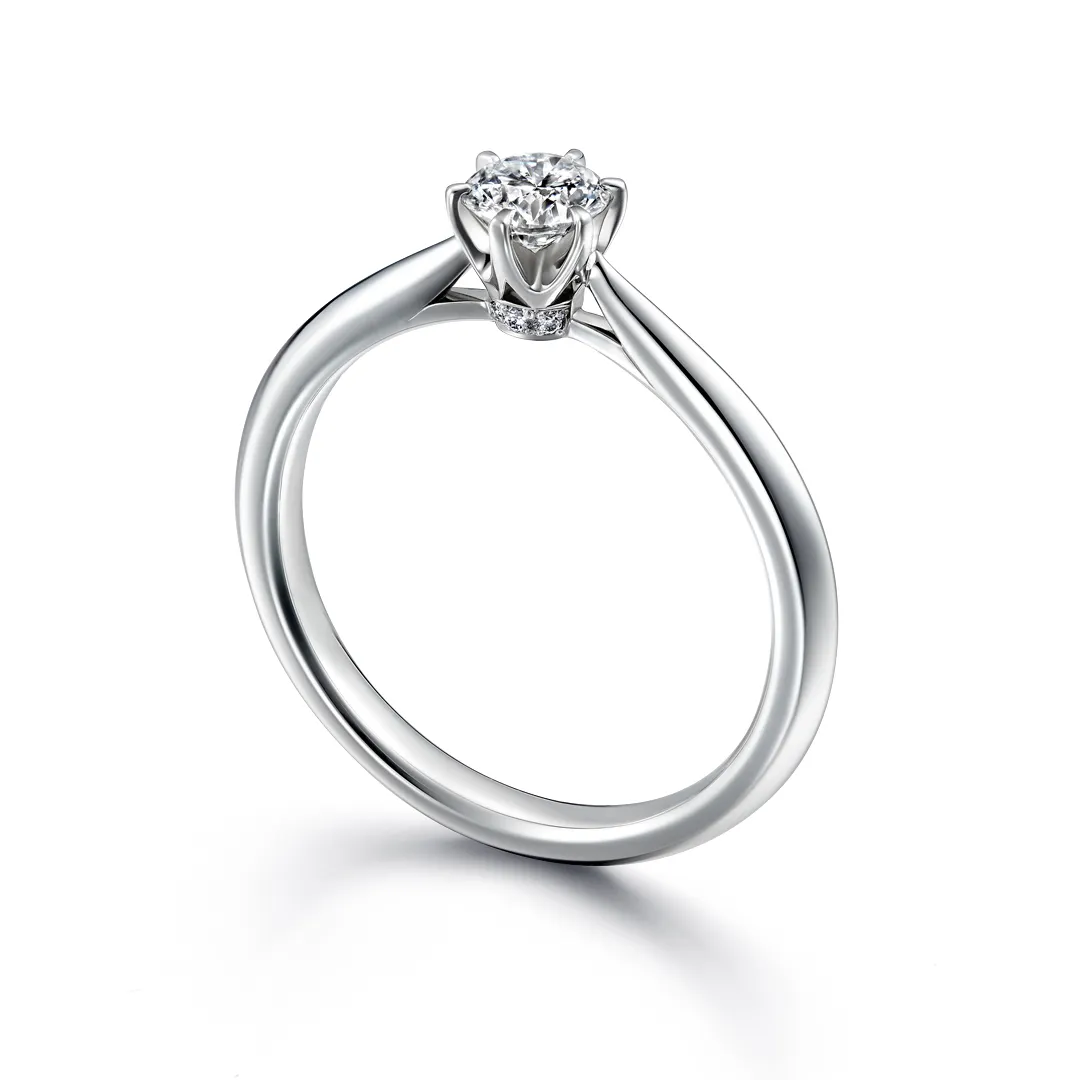 アームが高く軽やかにダイヤモンドを掲げるシルエットは、まさに「英雄」の名にふさわしい凛とした美しさ。その真の強さを支える知性とやさしさを、石座の下で輝く6石のメレダイヤモンドで表現した品格あるソリテールリングです。