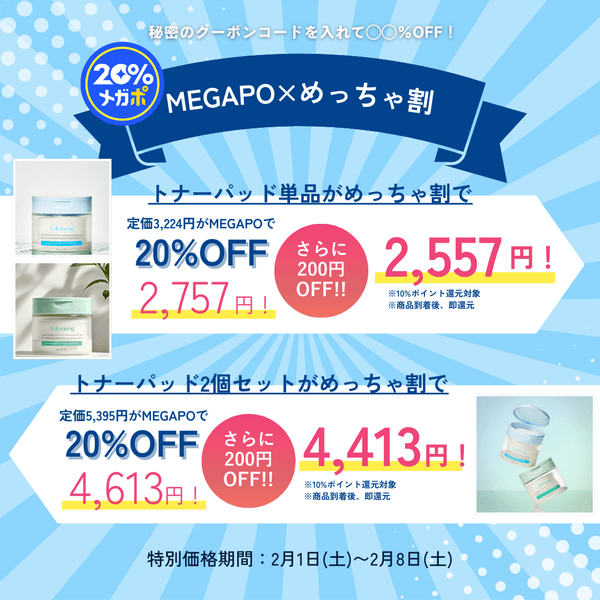 MEGAPO参加決定!韓国スキンケアスペシャルセットや限定の大抽選会などイベント多数!『MEGAPO×めっちゃ割』第二弾も同時開催!
