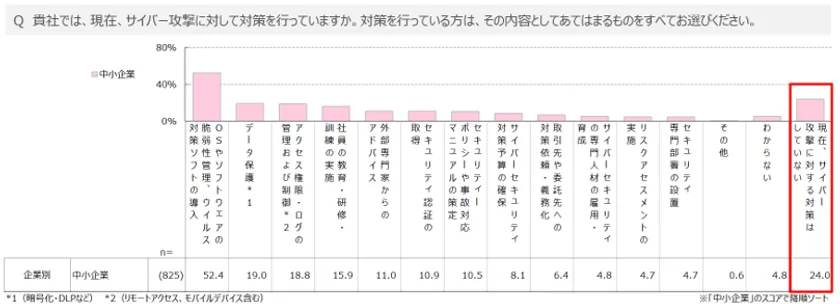 (1)中小企業の4社に1社は、今もなおサイバー攻撃への対策をしていない