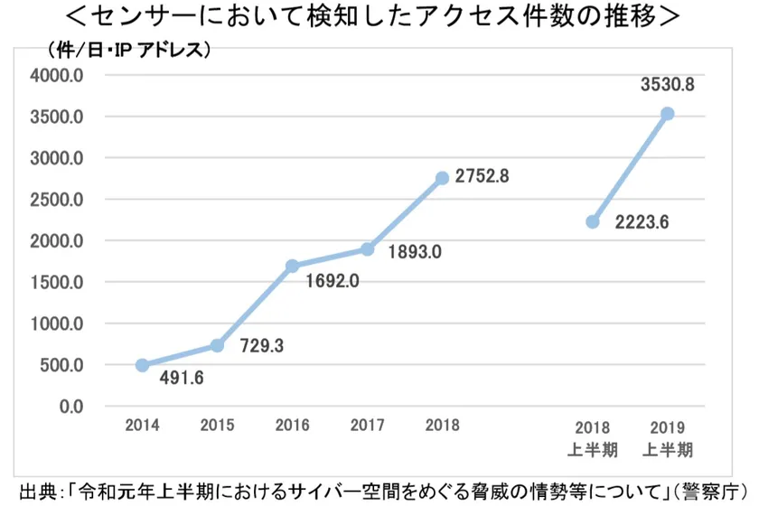 参考1.サイバー攻撃とみられる不審なアクセスは年々増加