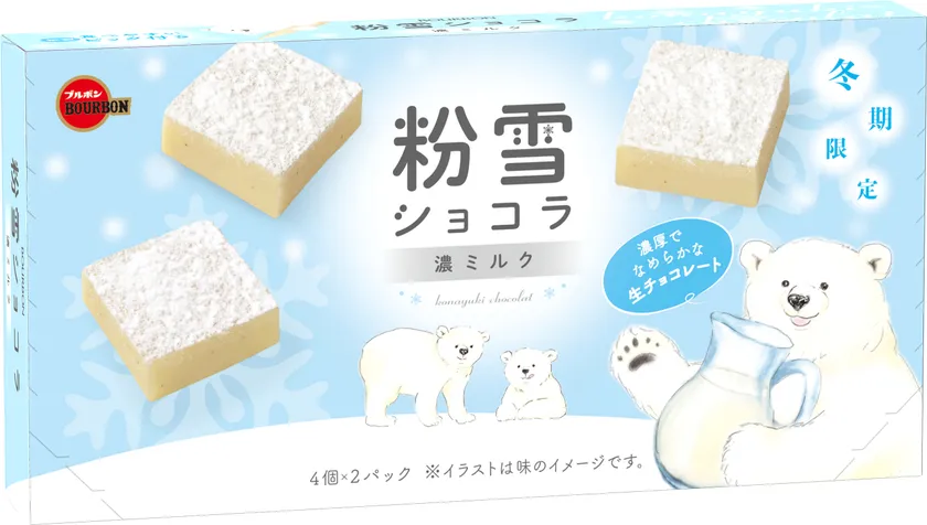 株式会社ブルボン(本社:新潟県柏崎市、代表取締役社長:吉田 康)は、濃厚なミルク感の冬期限定生チョコレート「粉雪ショコラ濃ミルク」を2020年2月までの期間限定で2019年11月12日(火)に新発売いたします。
