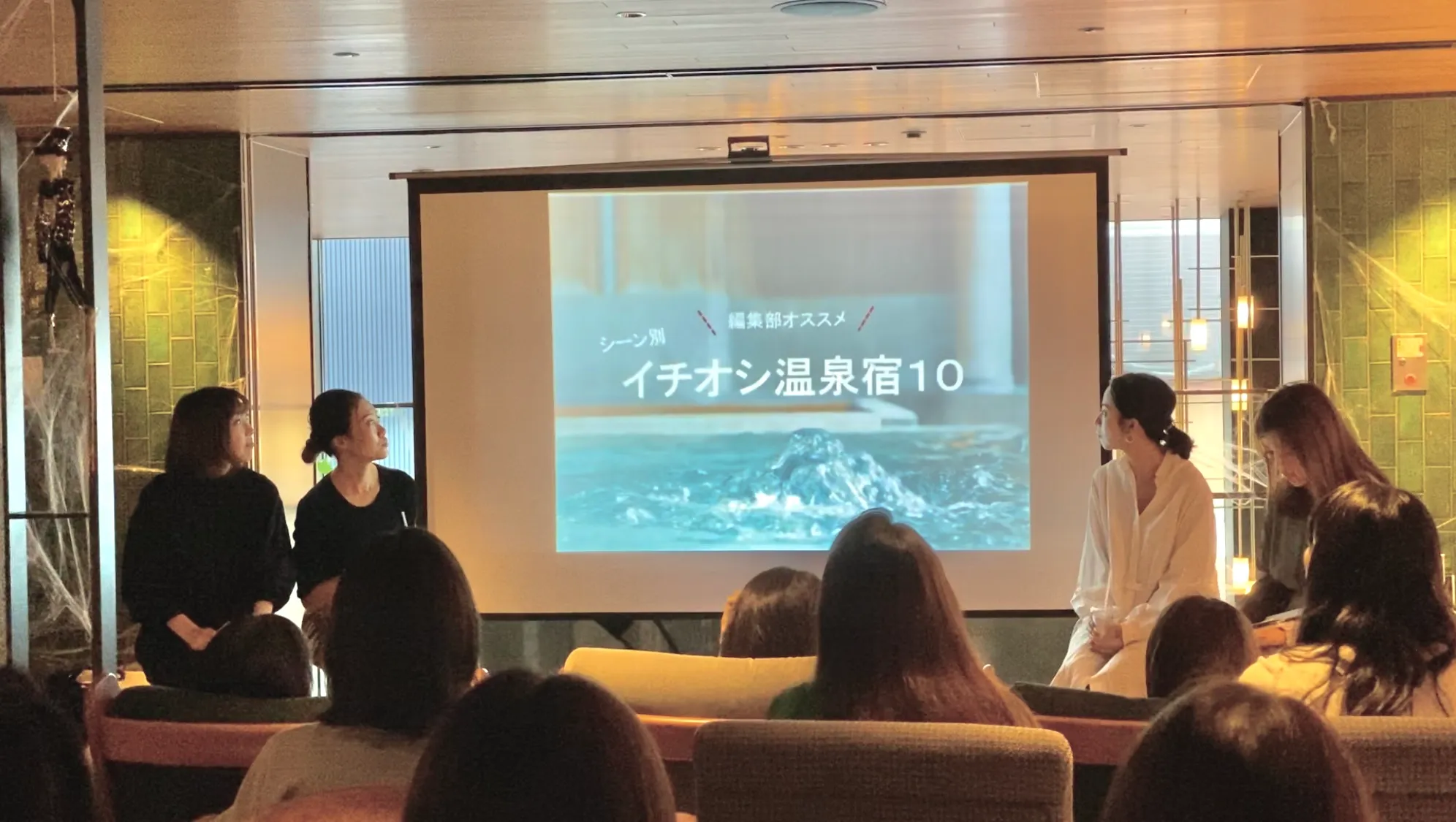 当日のトークショーにはゆこゆこ編集長上野、編集部小林が出演。ハナコラボ会員様と温泉の豆知識やおすすめの温泉宿など、制作の裏話や情報をお話しました。