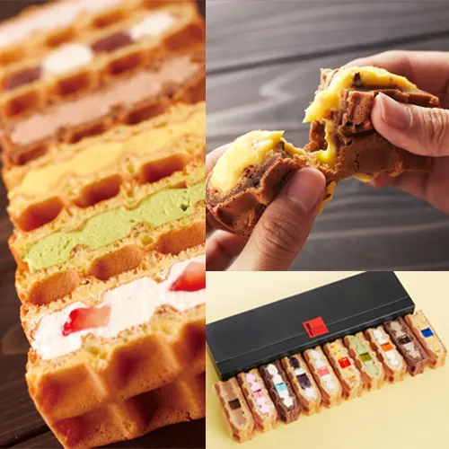 しっとりとした潤いとふわっとしながらも適度な弾力を持つワッフル生地は、作りたてのような口触りを感じていただける仕上がりです。
