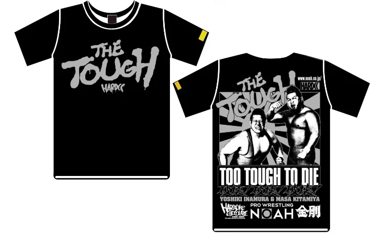 有限会社ハードコアチョコレート(本社:東京都中野区、代表取締役:宗方 雅也、以下 ハードコアチョコレート)は、プロレスリング・ノア所属のマサ北宮選手と稲村愛輝選手によるタッグ「THE TOUGH」のコラボレーションTシャツを、2019年11月2日(土)プロレスリング・ノア両国大会の日より発売いたします。