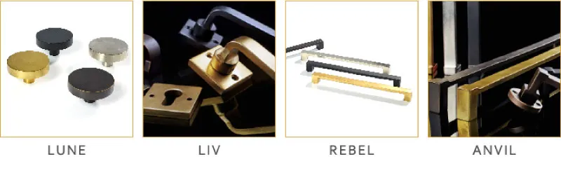 JOLIEは、50年以上も前からベルギーの建築装飾金物の分野で活躍してきた経験豊富な2人によって立ち上げられました。キャビネット用ハンドルやノブを始め、ドア・窓用ハンドル、バスルーム用アクセサリー等、今では80種類ほどの商品があります。