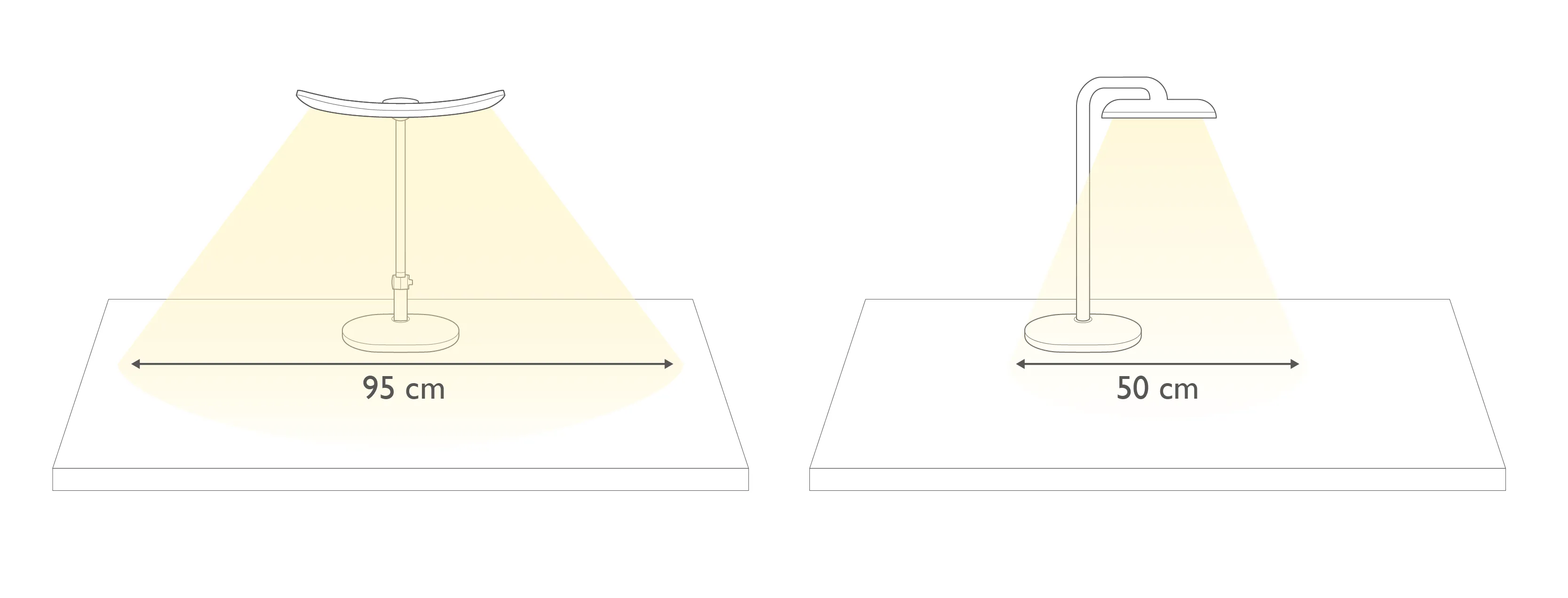 照明範囲が95cmもあります。リビング学習で大切な“子どもと大人が一緒に使用する”ことには問題がない幅です。