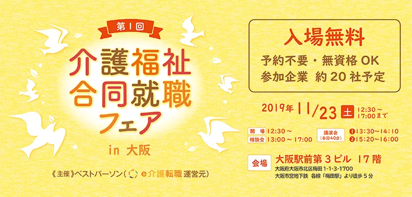「第1回 介護福祉合同就職フェア in大阪」を11月23日開催! 22社による採用相談やゲスト講演会を実施