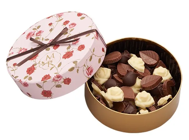 ~小さな薔薇を小花柄の箱に詰めたプチギフト。優しい甘さのチョコレートは1粒で幸せに。~
