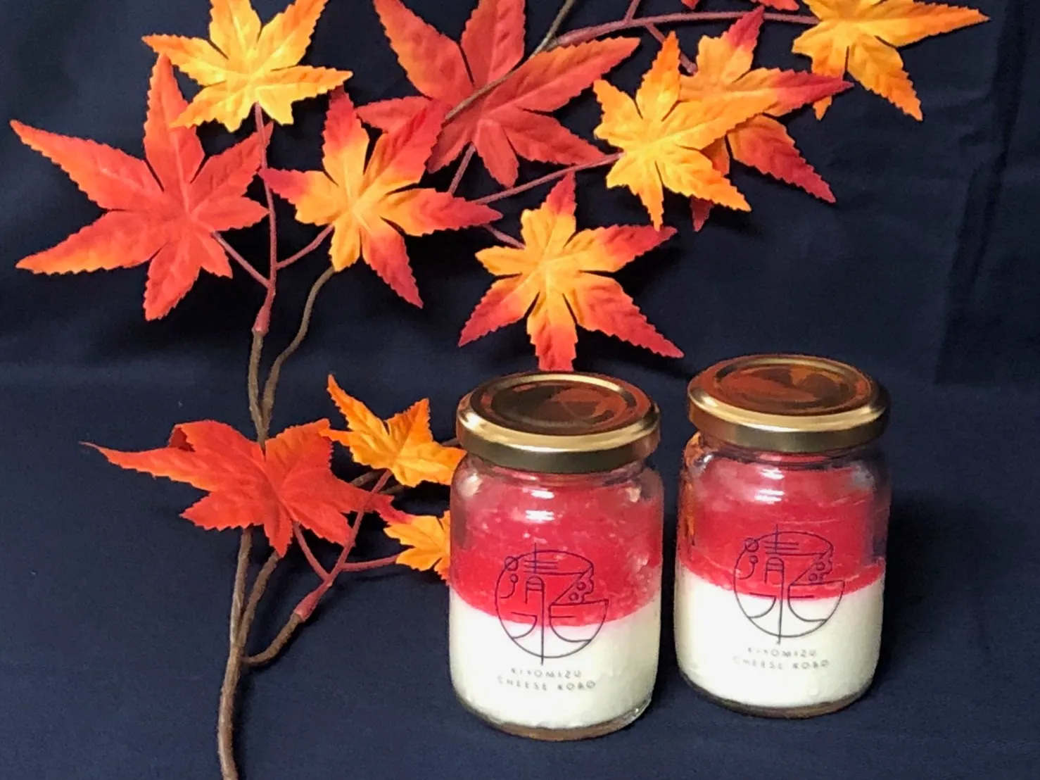 清水チーズ工房は、京都へ観光にいらっしゃったお客様に観光の思い出を持ち帰っていただけるようなお土産スイーツの開発を目指しております。今回もスイーツを通じて京都の紅葉を連想することができる商品開発を行いました。ぜひ、紅葉狩りを楽しんだ思い出にお召し上がりください。