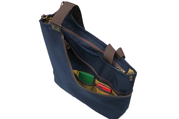 サイズの違うポケットをたくさん配置し、小物をしっかりすっきり収納できるトートバッグ