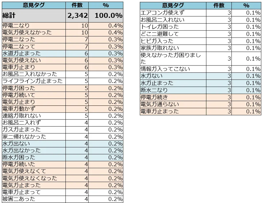 1:災害に遭ったときの不満、「電気が使えない」「水が止まる」など
