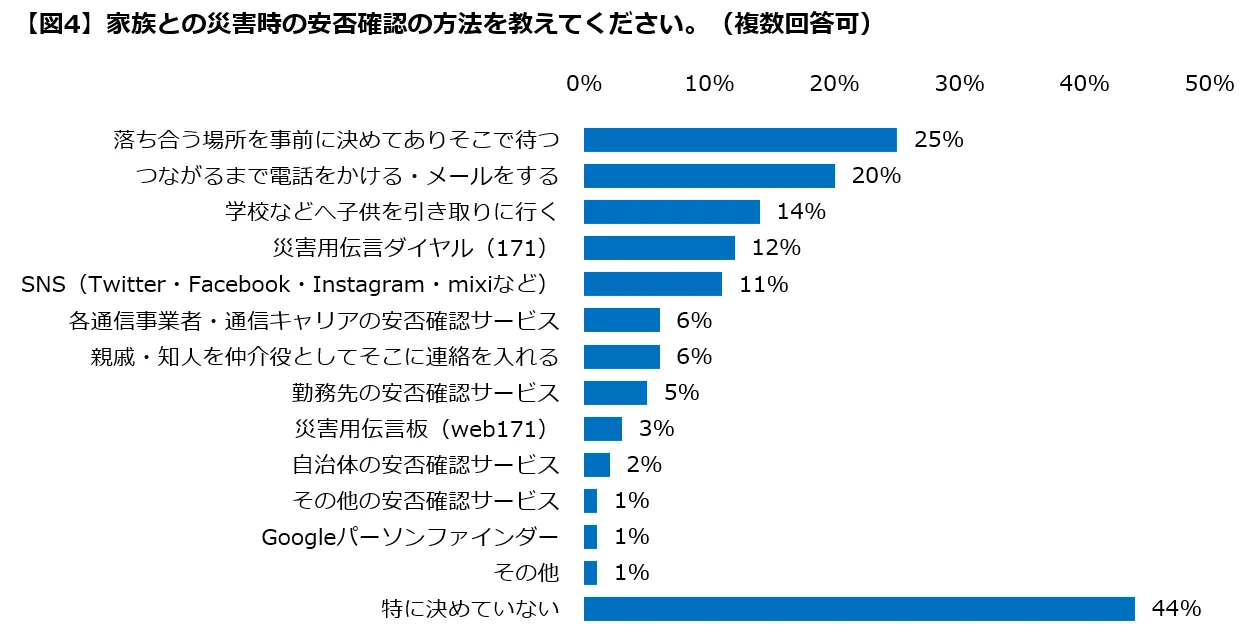 3:44%が「家族との安否確認方法を決めていない」と回答。(図4)