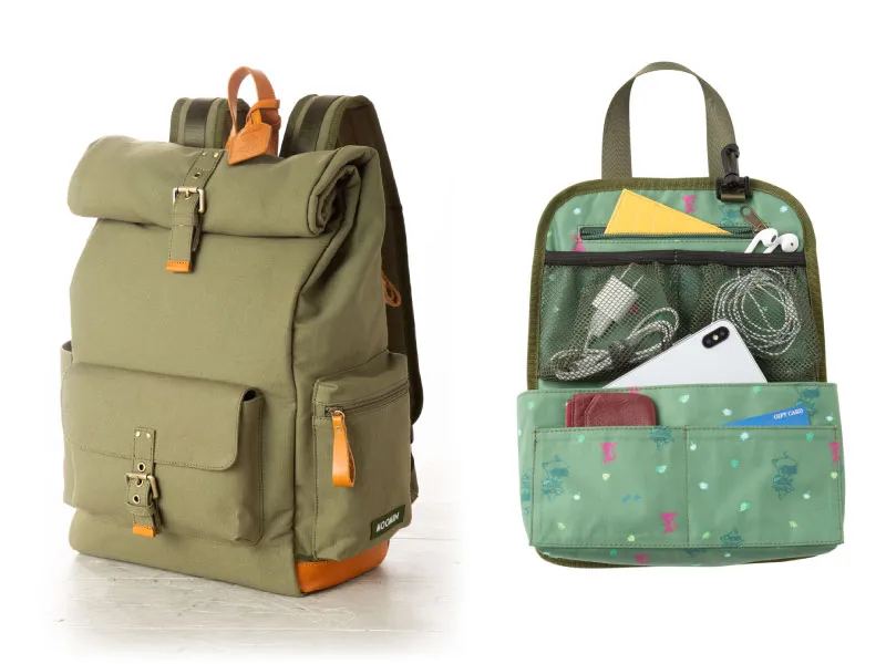 しかもお揃いの生地を使用したバッグインバッグ付きなので、小物類もバッチリ整理できちゃいます。