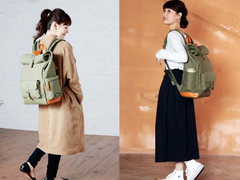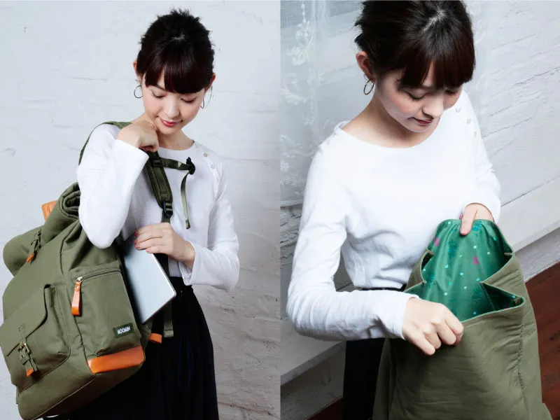リュックの生地に採用したのは、あの「倉敷散帆布」。国産ならではの高い品質と丈夫さや手触りの良さでも知られる人気の素材で、強度を高めるための牛革が、おしゃれなアクセントとしても効いています。