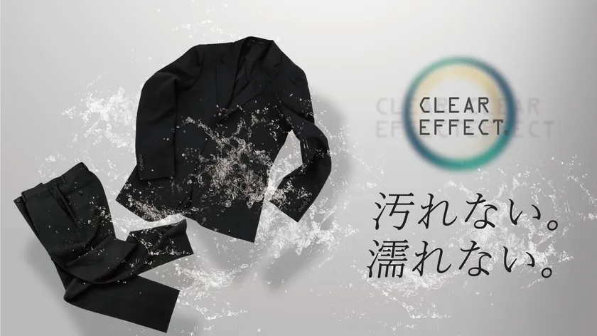 CLEAR EFFECTは他に例を見ない防汚性能を有したメンズスーツで、特に出張者向けスーツ・セットアップの決定版とも言える仕様のメンズスーツです。