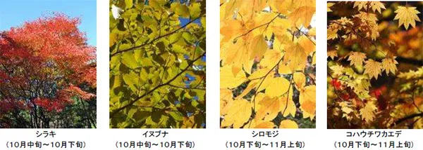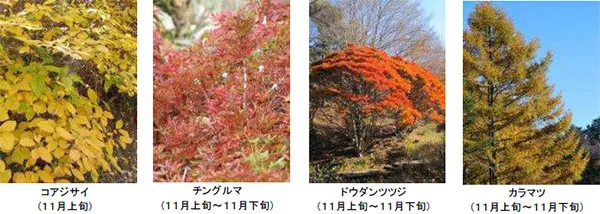 ※当園の紅葉は、シラキから始まり、ブナ、カエデ類、ツツジ類、カラマツ、高山植物と移り変わります。
