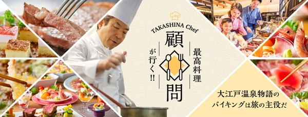本リリースでは、大江戸温泉物語グループのバイキングの基礎を創り、進化を支えてきた、最高料理顧問・高階孝晴と大江戸温泉物語のバイキングの魅力をご紹介いたします。