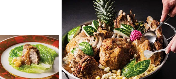 黒毛和牛のローストビーフは流行の「スパイス」でアレンジ。登場のたび行列必至の大人気メニュー、フォアグラのポアレはトリュフ風味でさらに贅沢に。中国料理では、大胆に骨付き肉を煮込んだ“ほろほろ”豚スペアリブをその場で取り分けます。また、ディナー限定でホテルビュッフェでは珍しい猪(しし)鍋もご用意いたします。