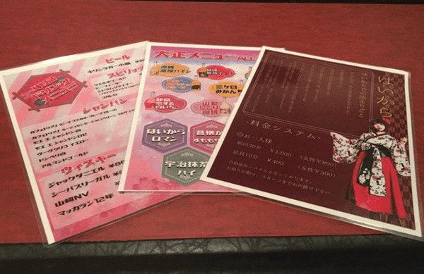 『cafe &barはいから』では、カラフルな袴に身を包んだ可愛らしい和装の女給さん達とカラオケをしたりチェキを撮るができます。