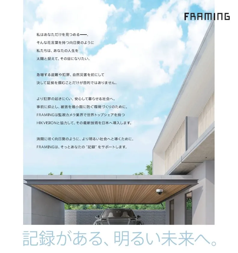 監視カメラ/レコーダーの年間販売台数8,000万台(2018年度)を誇る監視カメラ/レコーダー業界のトップメーカー「HIKVISION」と協力し、「記録によって、明るい社会を築く」をモットーに、日本市場および環境にマッチした監視カメラ/レコーダーを提供する新ブランドです。