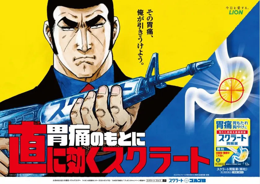 ライオン株式会社(代表取締役社長・掬川 正純)は、荒れた患部を直接修復する胃腸薬『スクラート胃腸薬』シリーズと、大人気劇画「ゴルゴ13」(さいとう・たかを作)とのコラボレーションキャンペーンを11月1日(金)より実施しております。