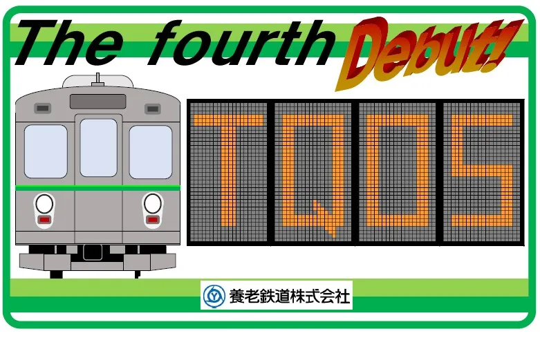 養老鉄道では、7700系車両のうち、TQ05編成(C#7705ー7905)が本年11月6日(水)から営業運転を開始することに合わせ、デビューを記念した系統板を掲出します。