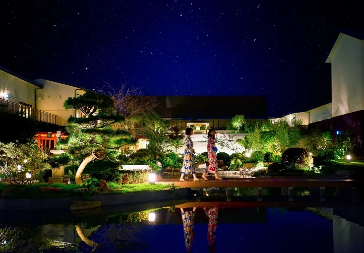 延床面積は約5,000坪、屋上には約1,000坪の日本庭園が設置される予定。館内には天然温泉をはじめ、飲食・物販・ビューティー・リクライナーと様々なサービスを取り揃えており、安土桃山時代の日本を体感できる館内着やSNS映えする写真スポットなど、様々な視点からお客様にお楽しみいただける要素を盛り込んでいます。