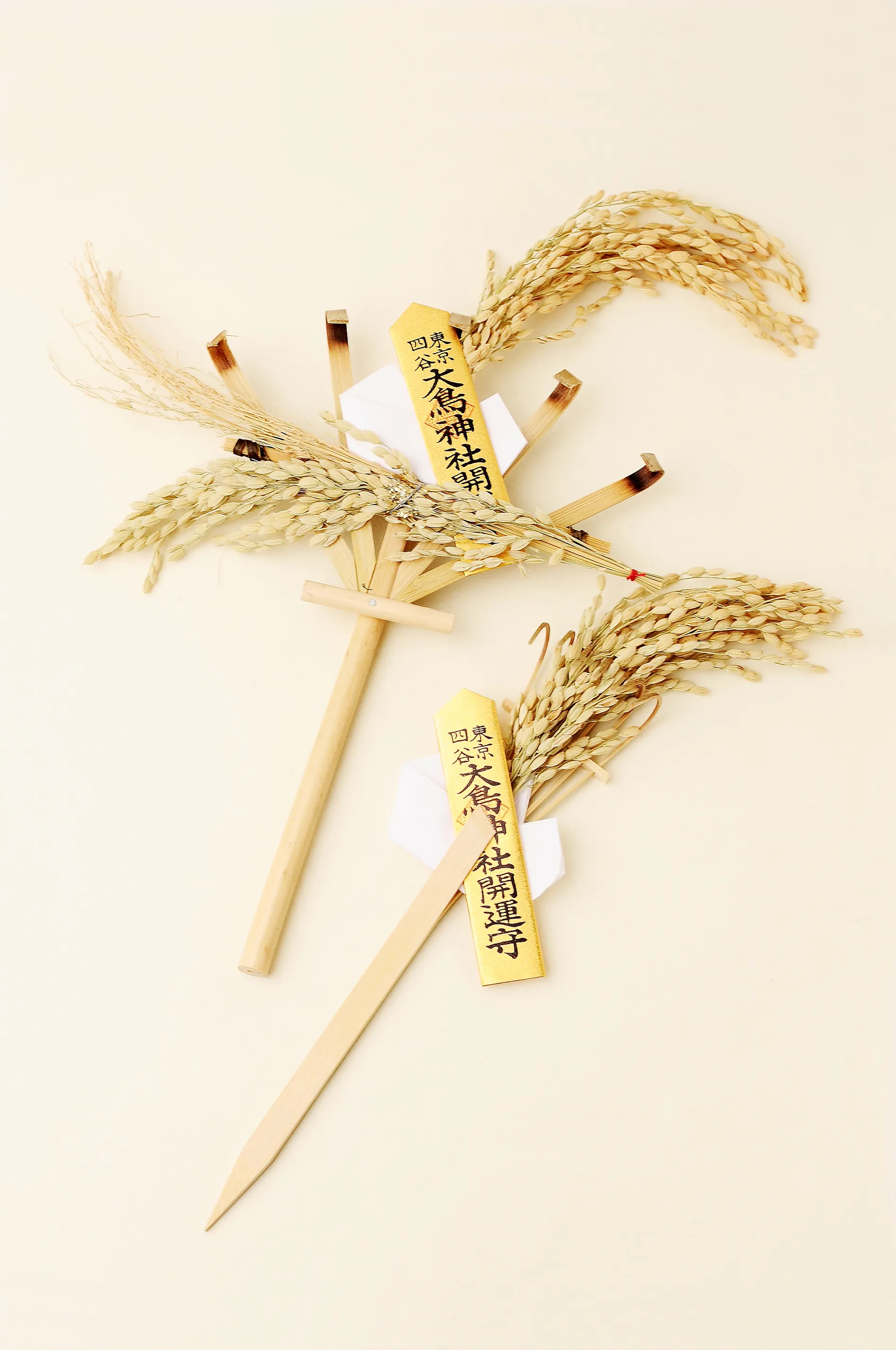 酉の市当日は、神社境内授与所において、この縁起のもとになる「開運熊手守」が授与されます。熊手守は古くより熊手で福をかっこむと伝われる開運・商売繁盛のお守りです。