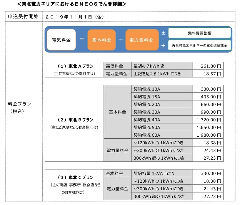 当社(社長:大田 勝幸)は、11月1日(金)から東北電力エリアで「ENEOSでんき」の申込み受付を開始しますので、お知らせいたします。