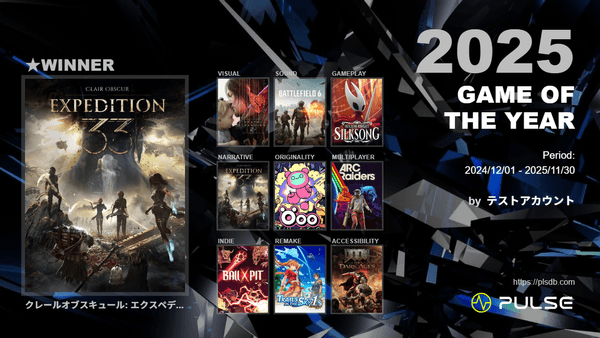 日本は世界のゲーム産業を牽引する国でありながら、信頼性の高いゲーム評価基盤が存在しません。PULSEは、ゲームを記録・管理するツールとしての実用価値を提供すると同時に、国内のゲームコミュニティに根ざした日本発の信頼性の高い評価基盤の確立を目指します。本プロジェクトは、PULSEをゲーマーにとってのインフラへと成長させるための第一歩です。